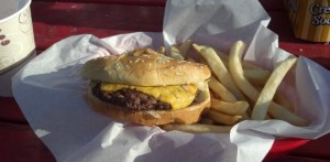 The menu board features variations on burgers and includes a few items requiring explanation like Texas Toothpicks. Green chile and grill sandwiches such as BLTs and Pork Tenderloin add variety, but the burgers are the way to go. With or without cheese, the “top of the line” beef patties are juicy and substantial; lettuce, tomato and onion, with mustard and catsup, on a standard bun round out the flavors.The fries are just okay. In fact, they’re weakest part of the menu. The shakes, on the otherhand, truly stand out and are made with fruit and whole milk. Bits of bananas, cherries or strawberries clog the straws, so it’s helpful to have a tall spoon ready to scoop out the thick, rich goodness. A variety of other fountain treats includes sundaes, cones and floats.