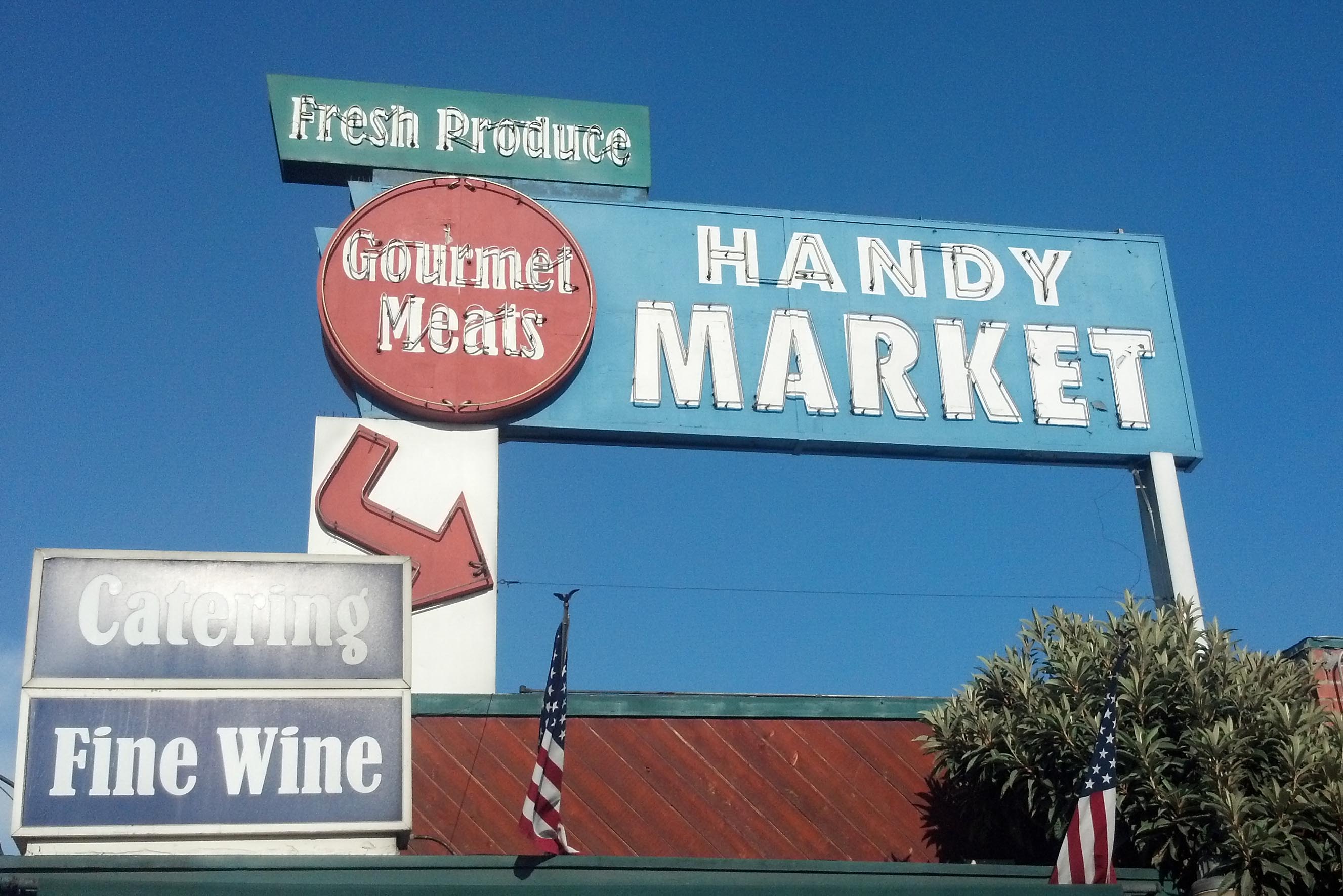 The Handy Market is just that: conveniently located and, despite its compact size, well-stocked with fresh produce, an impressive meat counter and a decent selection of wine and beer. And there’s the Saturday barbecue.