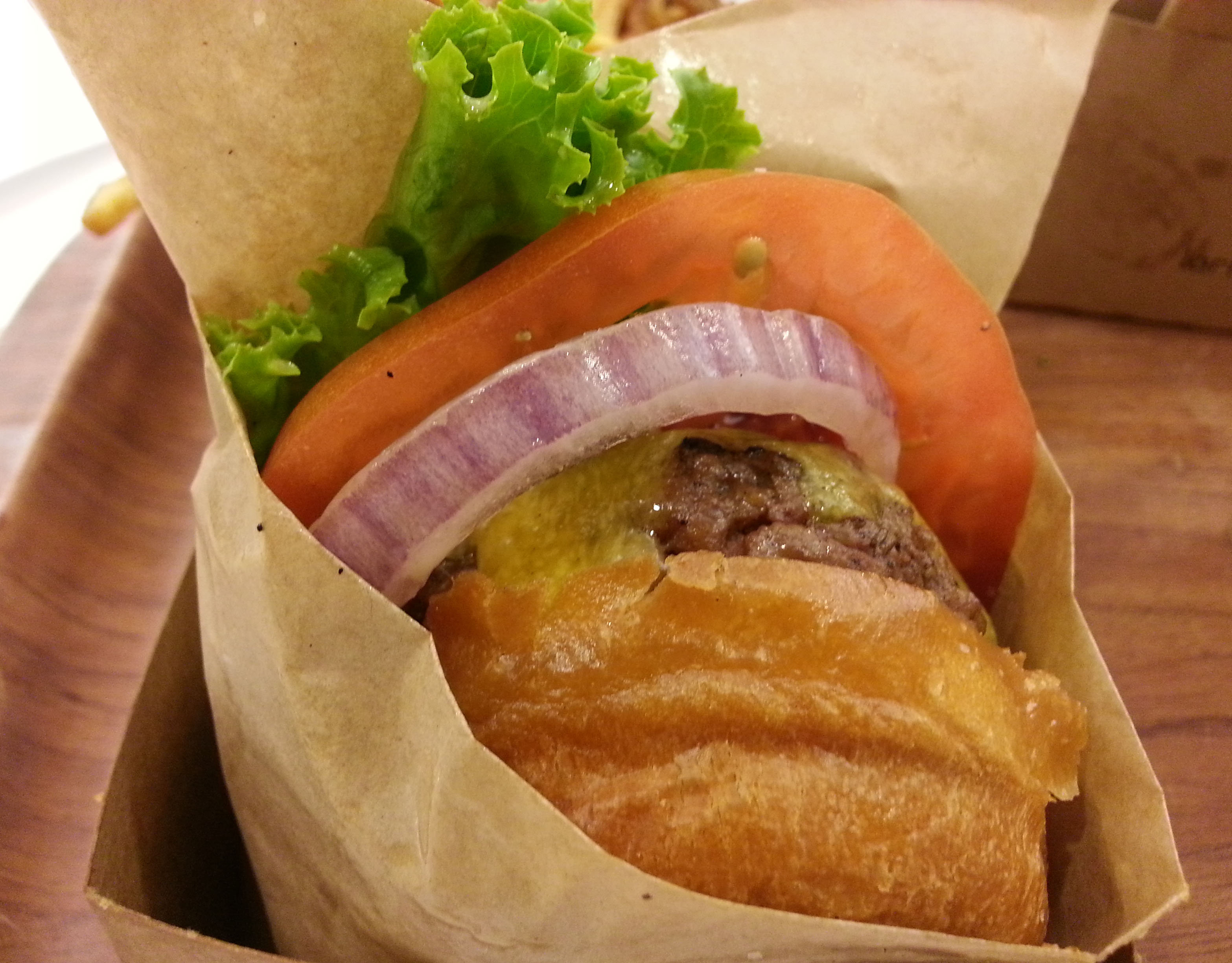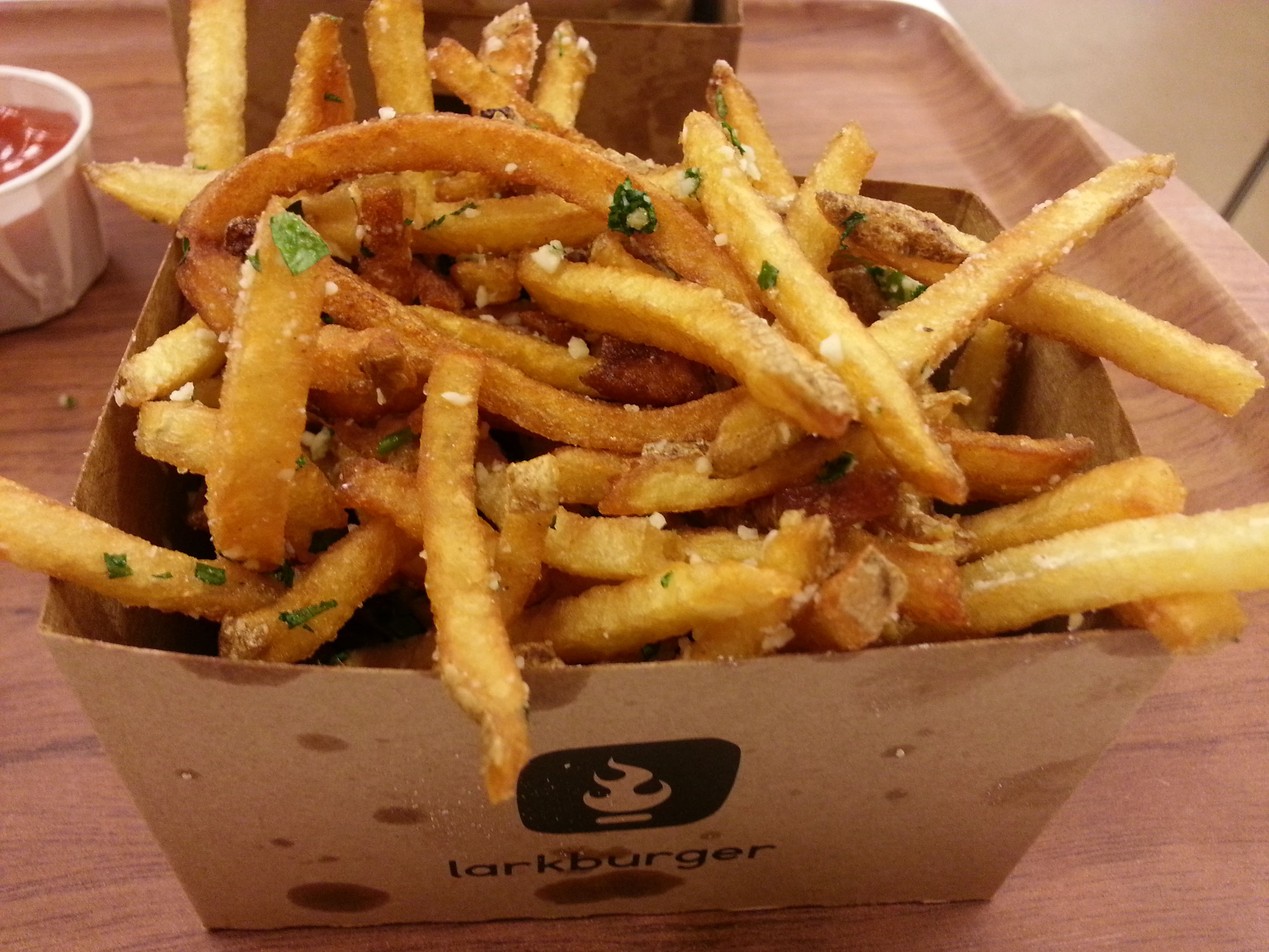 It doesn’t happen often, but sometimes there is nothing I want more than a good burger. One pink in the middle and so juicy I have to wipe my mouth after every bite. I’d heard that hamburgers at Larkburger were cooked to order, but I wasn’t sure about the messiness potential. I needn’t have worried.