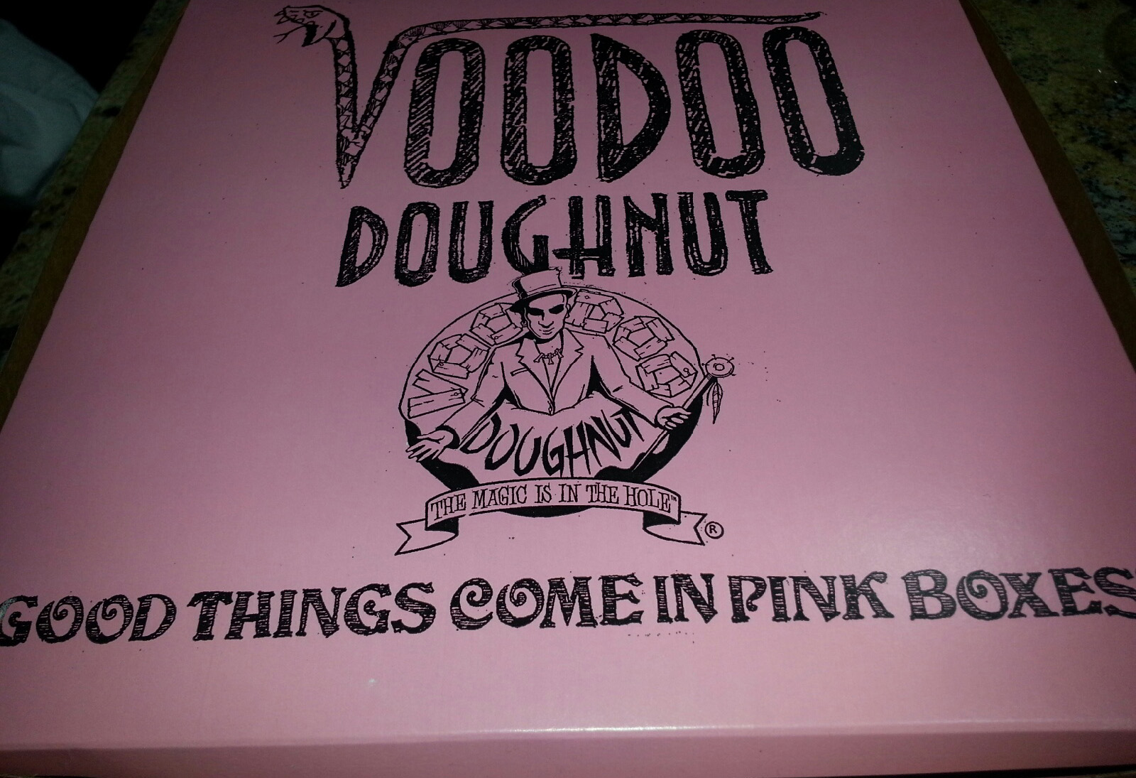 Mariana, our son Tim’s girlfriend, is wonderful for many reasons. Her most recent way into our hearts, and stomachs, was to walk into our house with a box of Voodoo Donuts. We don’t live in Denver, so these are treats I have only read about. Most of what I’ve read includes the lengthy lines involved in snagging a sugary dozen.