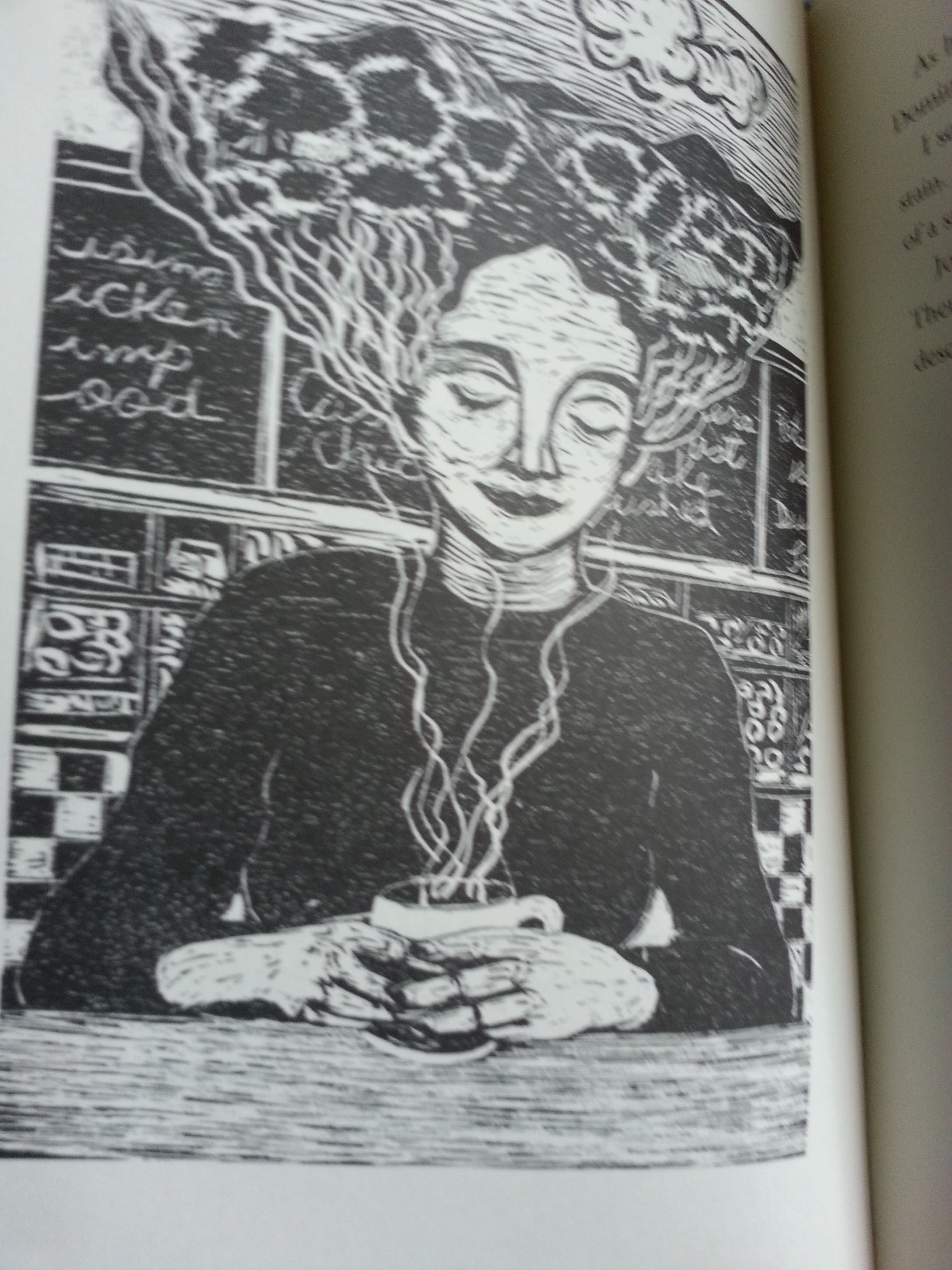 Summarizing a short work without revealing too much is challenging. The woodcuts alone are mesmerising, and Alavarez’s writing is descriptively rich. I imagine it’d go great with a cup of java.