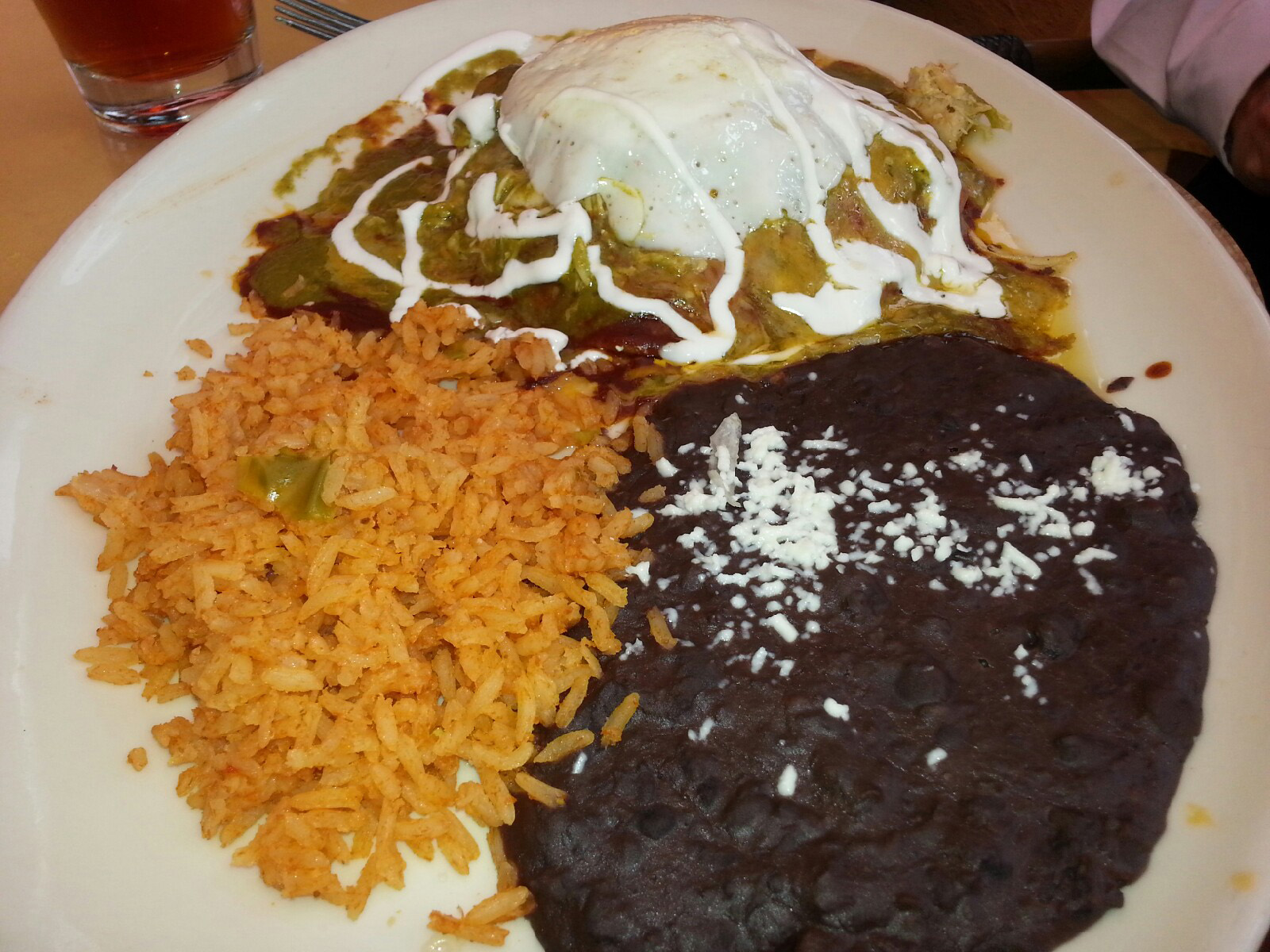 The menu features traditional Mexican fare ranging from tacos to carnitas and several creative variations. I was intrigued by the Green Corn Tamales. This is considered the restaurant’s signature dish. Until recently, it was only available from May to October. The tamales are now available year round. Fresh green corn is cut off the cob, which is mixed with the corn masa. The result is a slightly sweet corn meal that coats the corn husks and contrasts with the sharp cheddar cheese and green chile that’s wrapped inside, tied together and steamed. The standard rice and beans round out the plate.